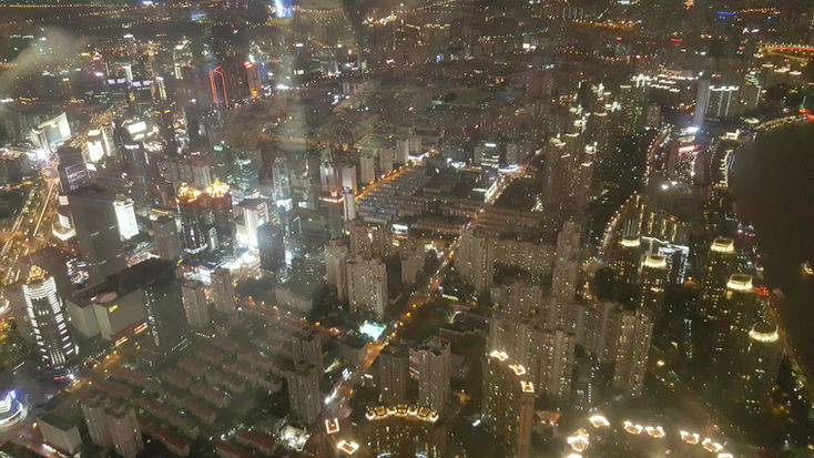 Angekommen am Ufer packte es mich und ich wollte unbedingt doch noch auf den Shanghai Tower, zwar wollte ich diesen am nächsten Tag auch noch tagsüber anschauen, doch die Nachtsicht wollte ich mir nicht nehmen lassen. So machte ich mich auf den Weg - zu Fuss - hartnäckig suchte ich mir meinen Weg - Schlussendlich kam ich mit der Fähre die entlang dem Fluss nach ca. 15 Minuten erreicht war, rüber und ging dort zum Turm. Schon ging es hoch in die Lüfte, keine 50 Sekunden und man ist "on the Top" - herrlich beeindruckend dann die Aussicht. Belohnt mit guter Sicht und schönen Bildern ging es wieder zurück. Ich nahm wieder die Touristenuntergrund-Tunnel-Verbindung und lief gemütlich zu Fuss Richtung Hotel. Dann überkam mich das Gefühl, mich massieren lassen zu müssen. Zwar war in noch vor dem Abflug bei der Massage, weil mich seit einigen Tagen üble Kopfschmerzen plagten auf der linken, hinteren unteren Kopfseite, stechend, aber diese wollten und wollten nicht verschwinden. So wollte ich die echte "chinesische Massage" ausprobieren. Gesagt getan - ein kleiner und toller Salon war schnell gefunden, und so kam ich um 10 am Abend noch in den Genuss einer herrlichen Massage.